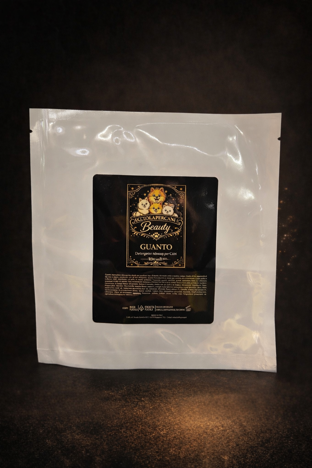 Il Guanto Detergente Monodose è la soluzione ideale per una pulizia rapida ed efficace del manto, adatta a qualsiasi tipo di pelo. Pensato per l’uso quotidiano, in viaggio o tra un bagno e l’altro, consente di mantenere il cane pulito e curato in pochi gesti.