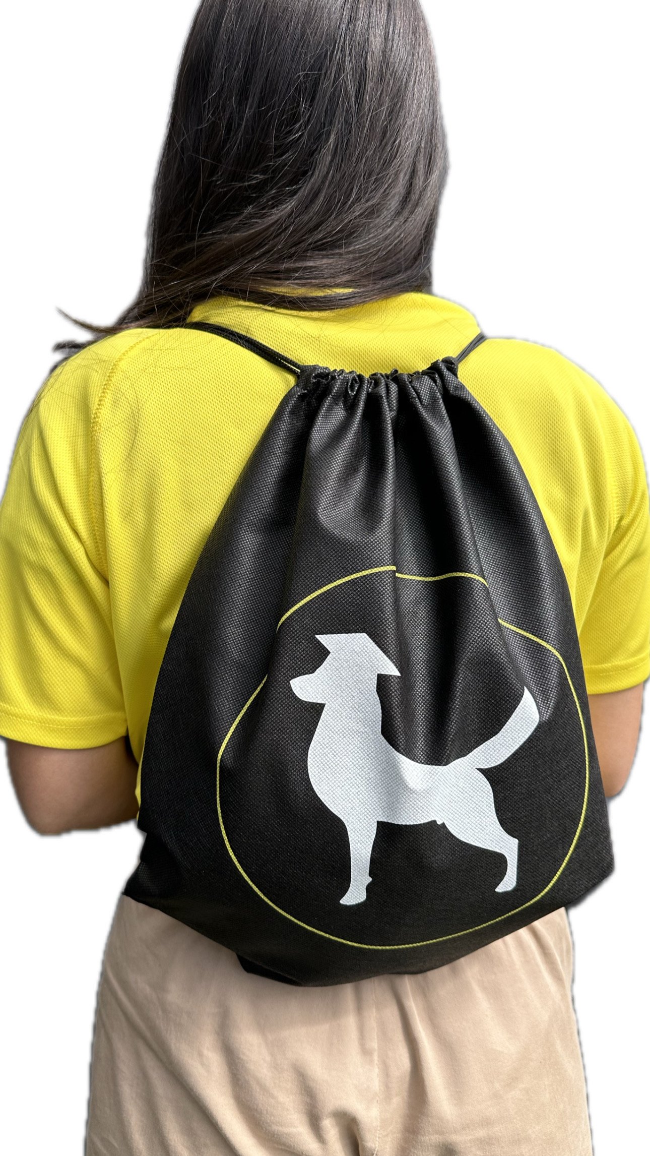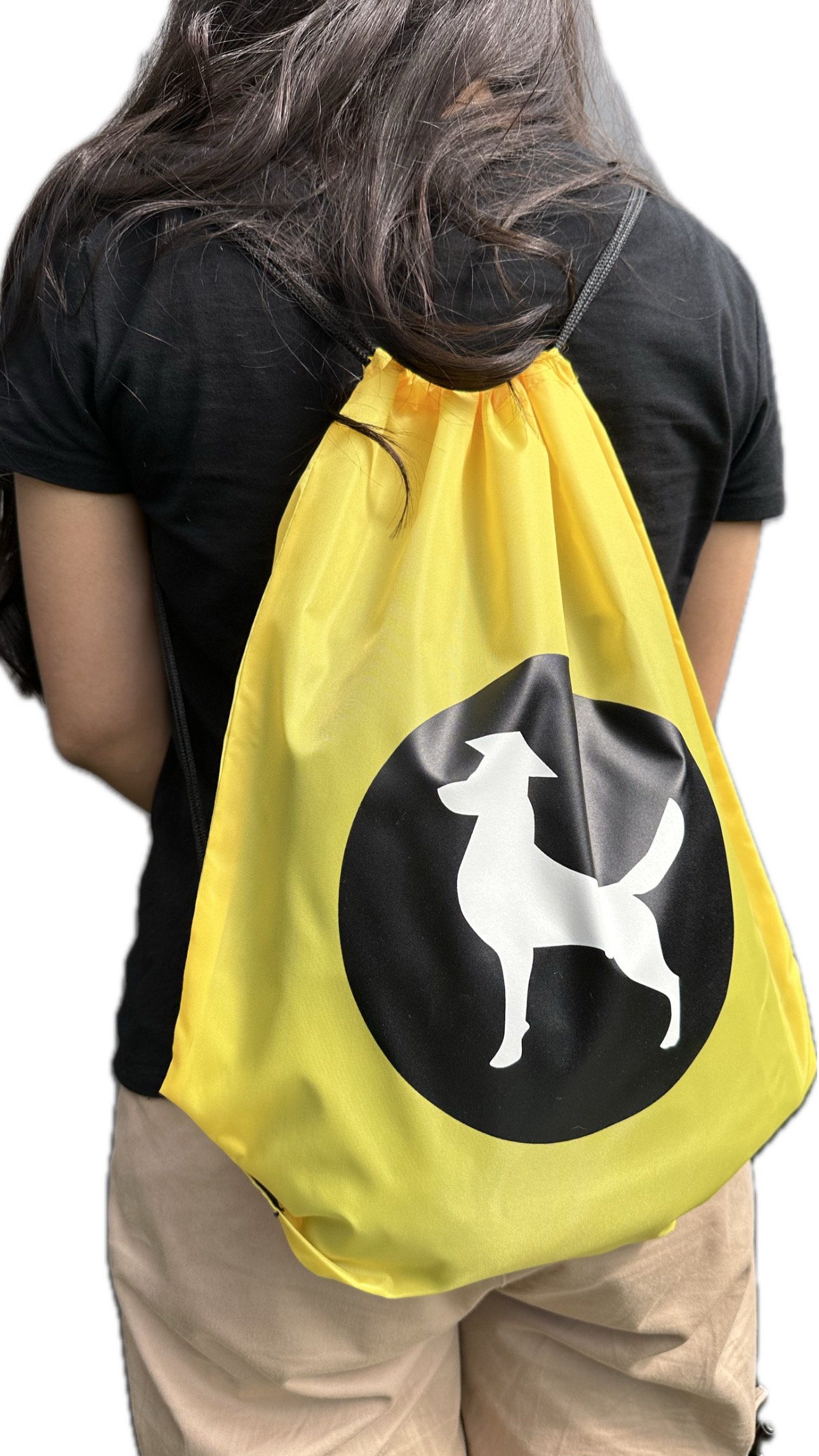 Sacchetta personalizzata Scuolapercani – in nylon e tessuto, gialla o nera
